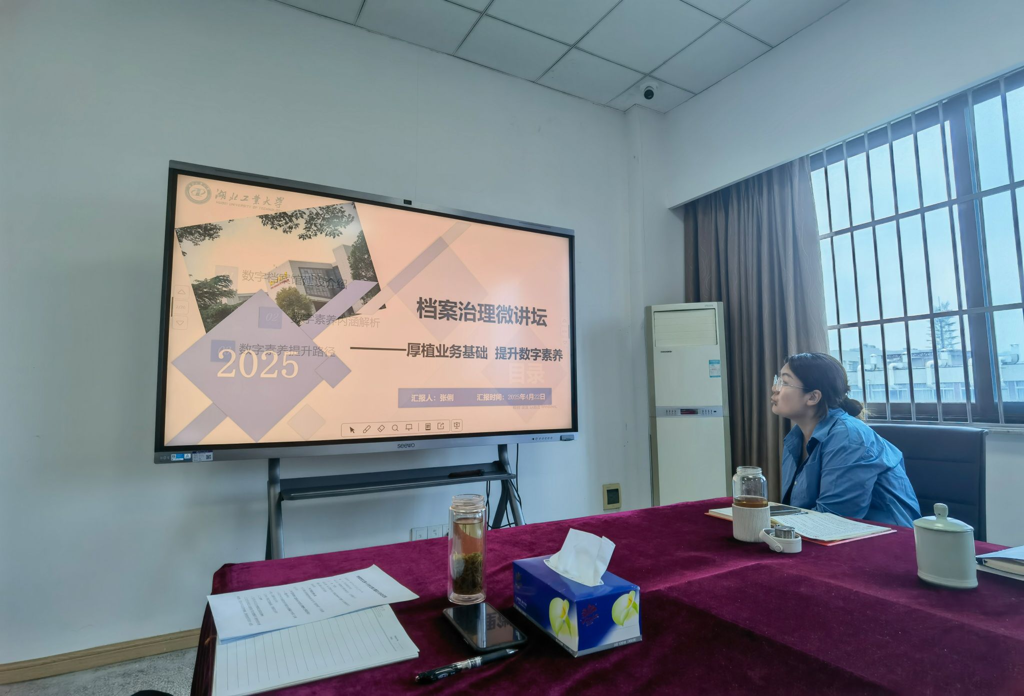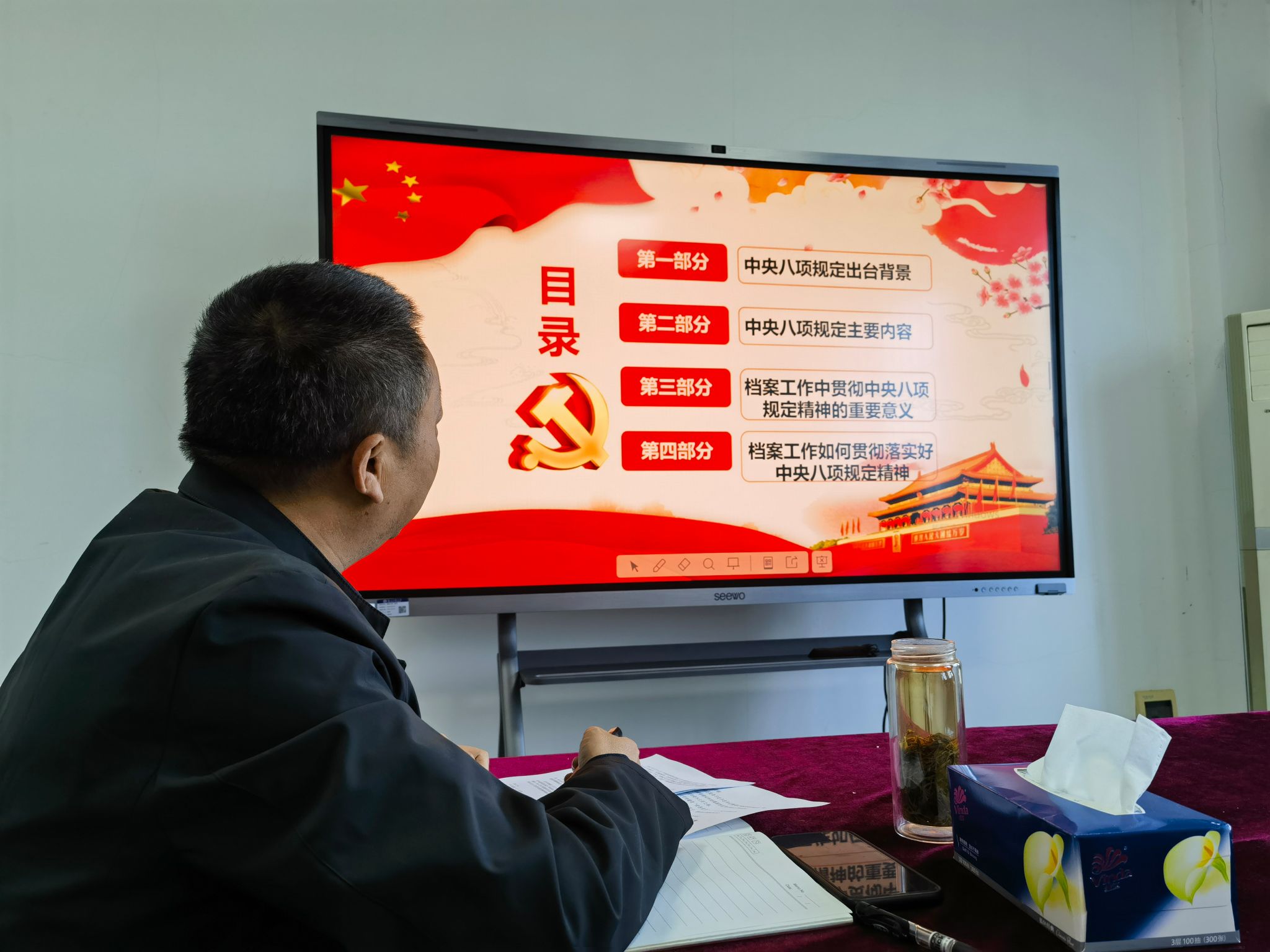 本次活动主题为“深入贯彻中央八项规定精神学习教育 扎实推动学习教育入脑入心见行见效”。活动包含六个部分内容:首先学习了档案法律法规,由刘丽娟同志导学《湖北省档案管理条例》第六章“监督检查”;第二项学习重要讲话、重要会议和重要文章精神,采取导学和自学相结合的形式学习了学校要求的学习内容;第三项由肖媛媛同志分享档案领域警示教育的五个案例;第四项档案馆党支部书记丁保胜讲党课《贯彻中央八项规定精神,推进档案工作高质量发展》;第五项党建与业务融合,张俐同志做了2025年第2期“档案治理微讲坛”《厚植业务基础,提升数字素养》;最后一项,与会人员参加了贯彻中央八项规定精神知识测试。