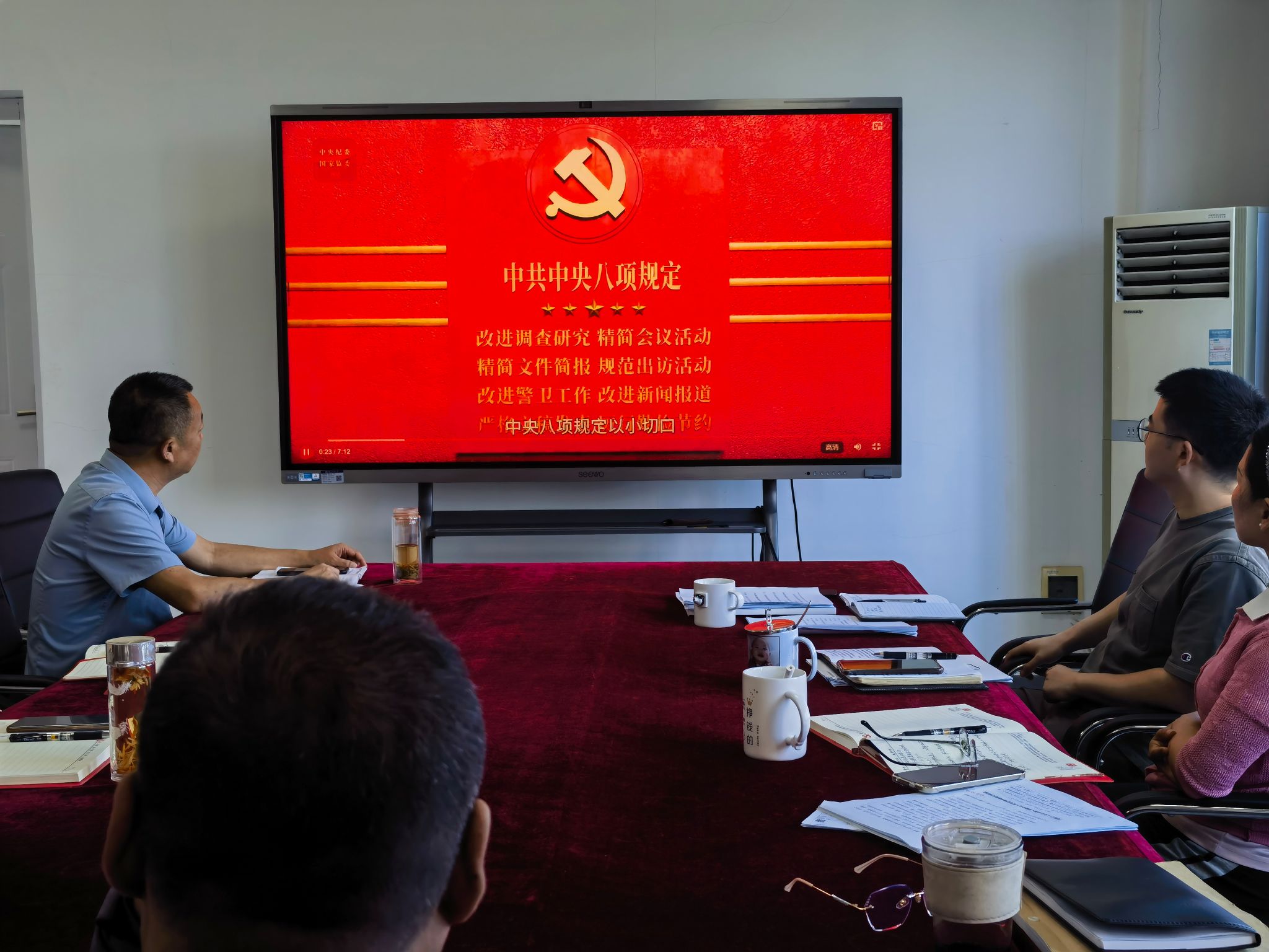 第三项贯彻中央八项规定精神学习教育警示教育,由丁保胜分享了违反中央八项规定精神典型问题和典型案例,并强调要认真学习中央八项规定及其实施细则精神,对照典型案例深刻剖析反思,认真检视查摆自身存在的问题和不足,从中受到警醒、汲取教训,以案促学、以案促改。