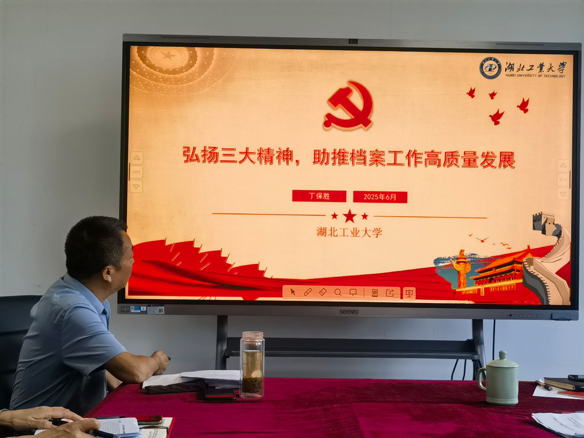 6月19日下午,档案馆支部在行政楼B501组织举行了6月份支部主题党日活动,活动由党支部书记丁保胜主持。