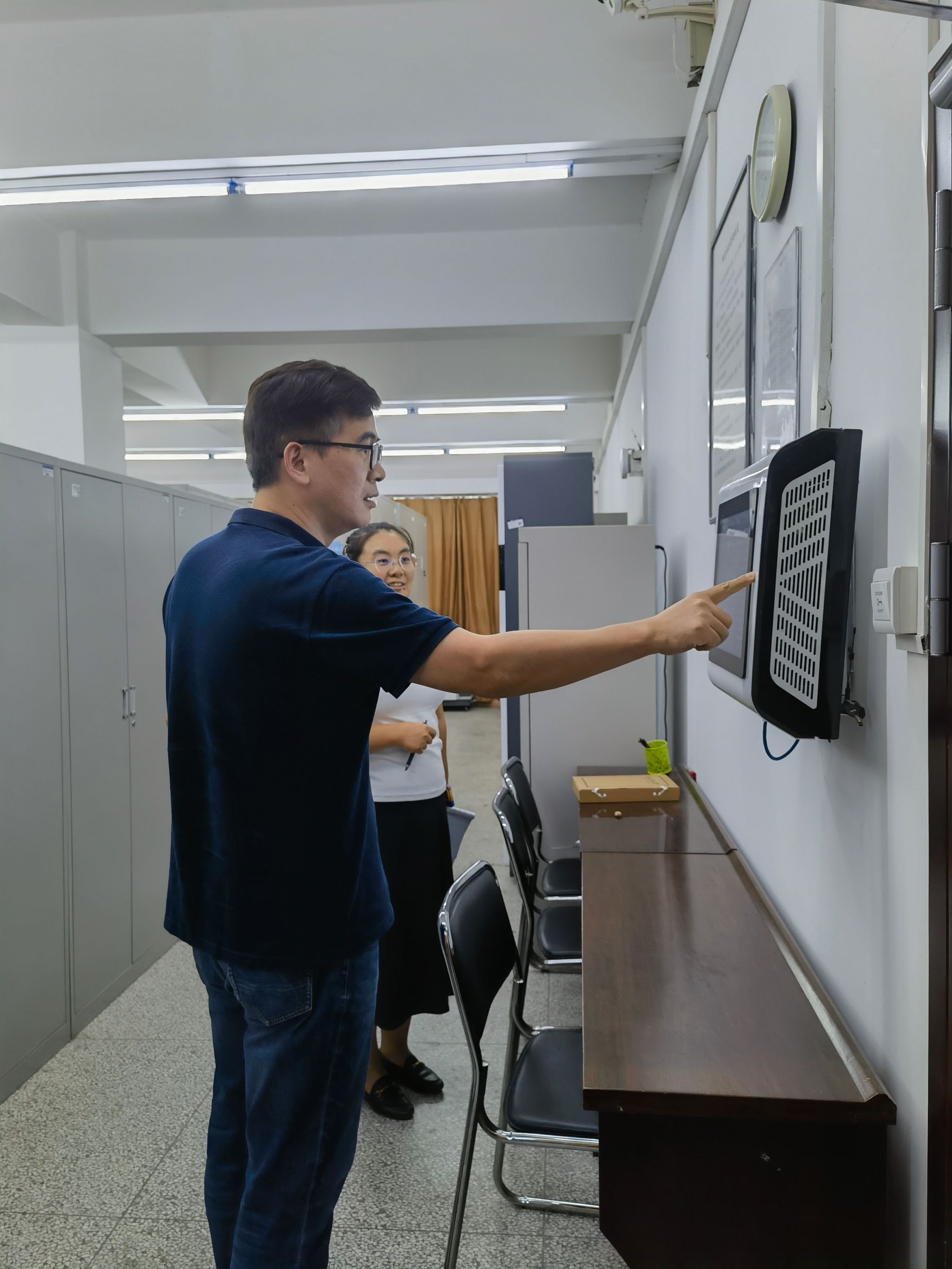 由黄瑶带领的检查小组排查了校史馆安全隐患情况,对展柜、展品、灯具、空调、电子设备和安防设施进行了全面检查,并对学生团队进行了安全教育和叮嘱。