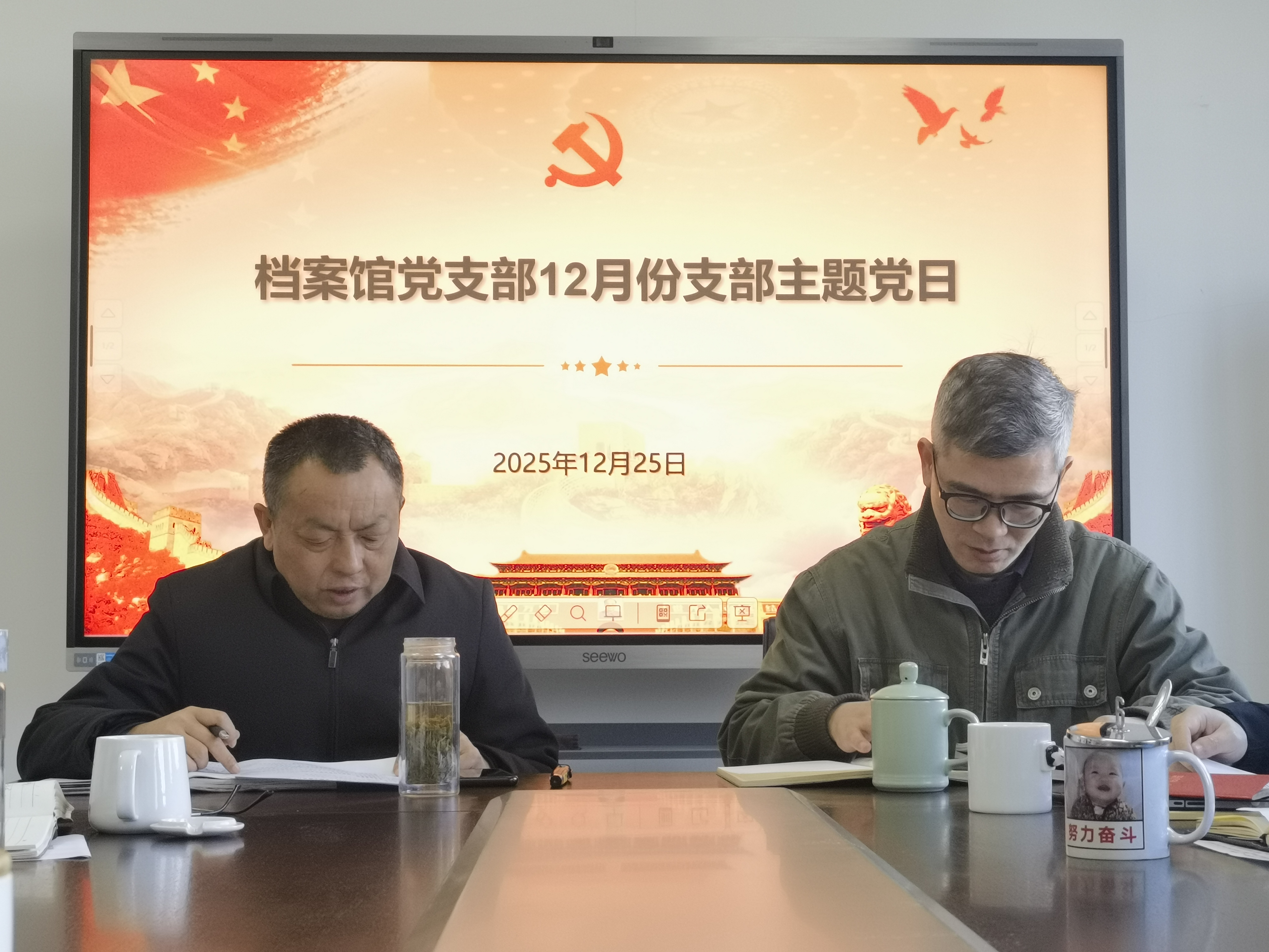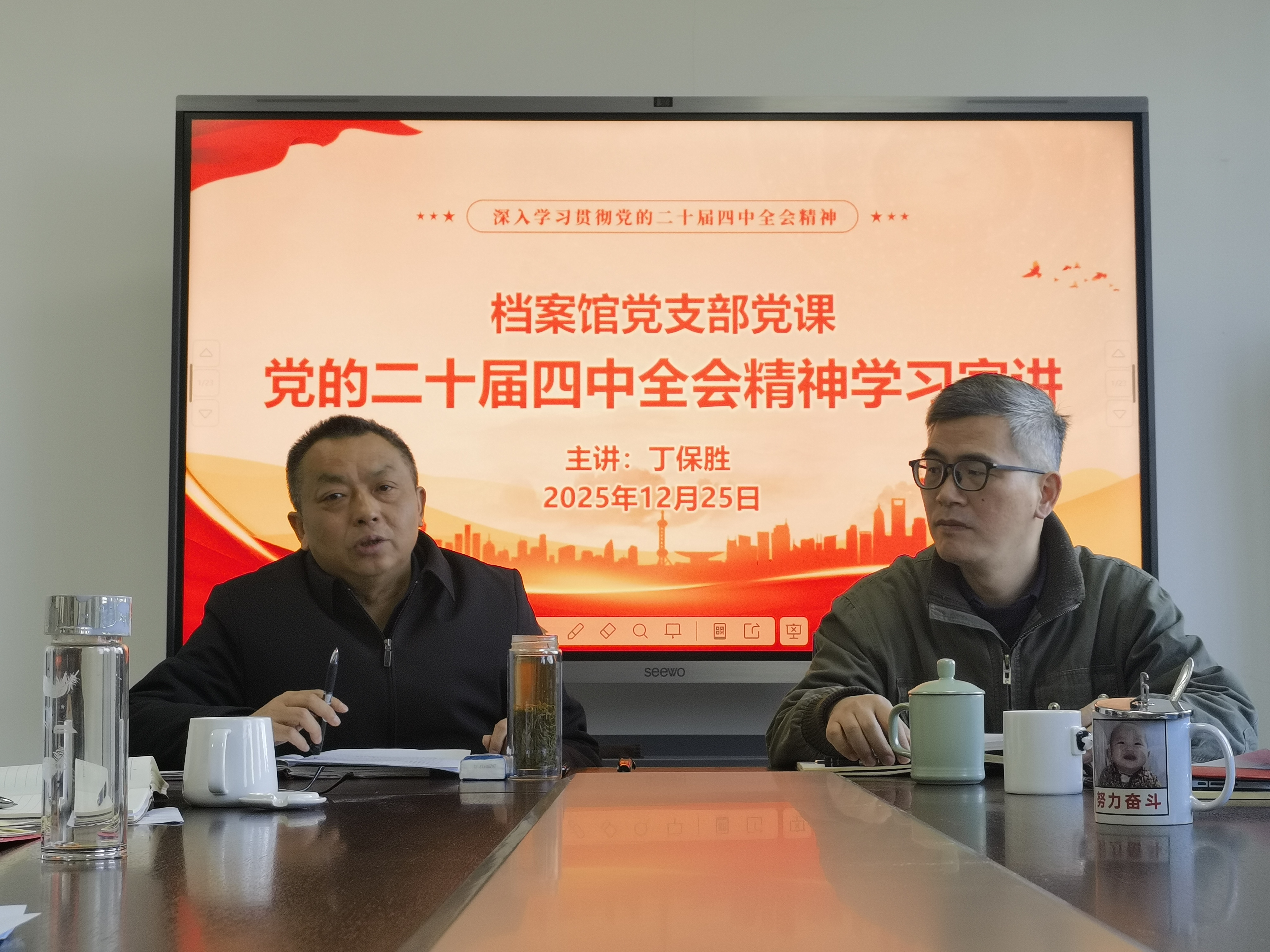 12月25日上午,档案馆支部在行政楼B501组织开展了12月份支部主题党日活动,活动由党支部书记丁保胜主持。
