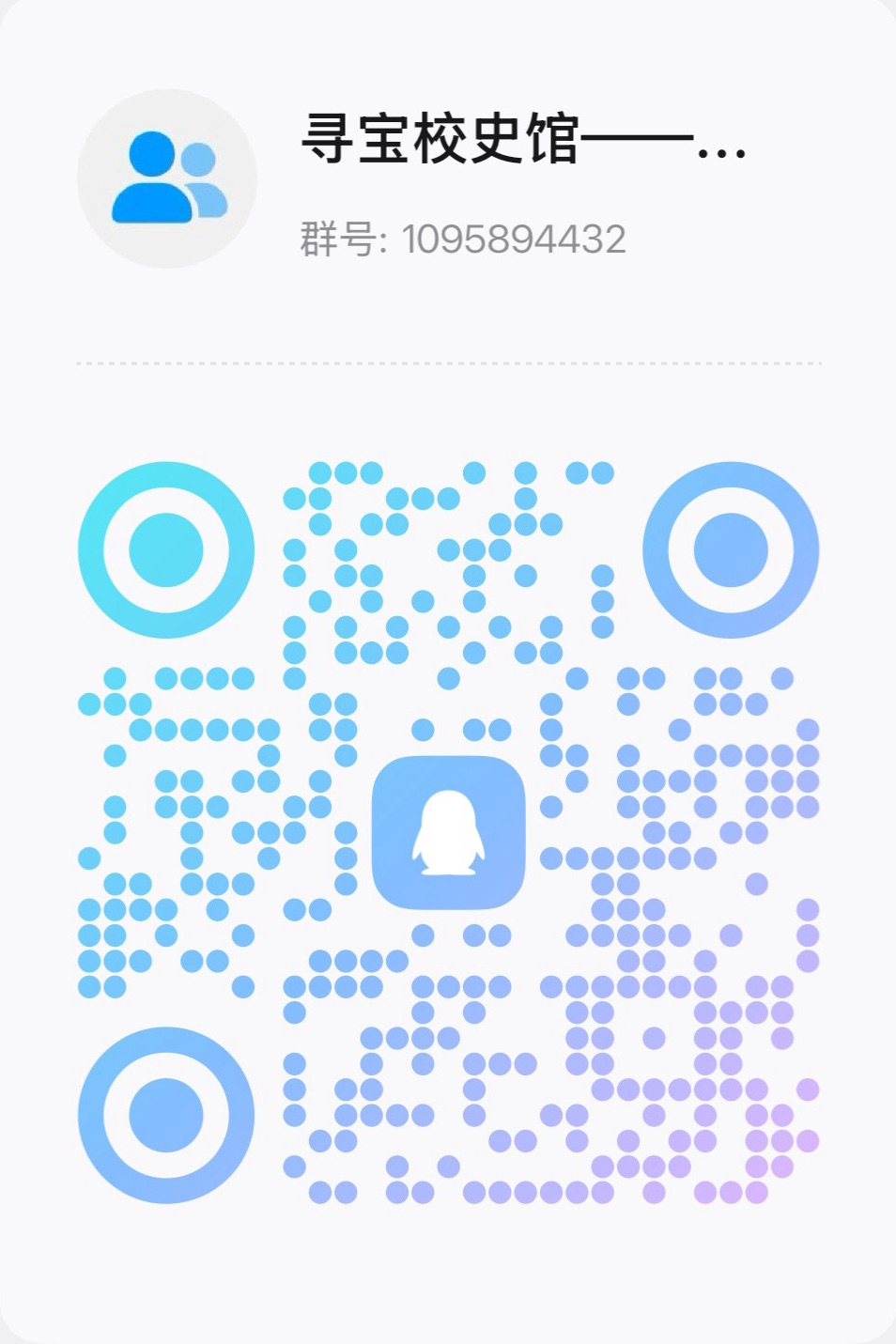 (1)搜索QQ群号“1095894432”,加入“寻宝校史馆”官方QQ群;