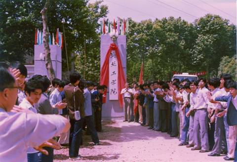 1984年,湖北工学院获批组建。1985年3月,学院领导班子到任,在讨论学院组建成立工作时,提出召开一个比较隆重的、有历史意义的成立大会,确定成立大会的主要程序之一是在校门口举行湖北工学院挂牌仪式。为此,学院决定在巡司河桥头新修建一个校门,作为湖北工学院的主校门(图三、图四)。校门由四根简单的方形柱子构成,中间两根略高,两边两根略矮,由懂测量和土建的原湖北农业机械专科学校教职工石汉同志设计。此校门旧址位于现湖北工业大学北门处,已拆除新建。